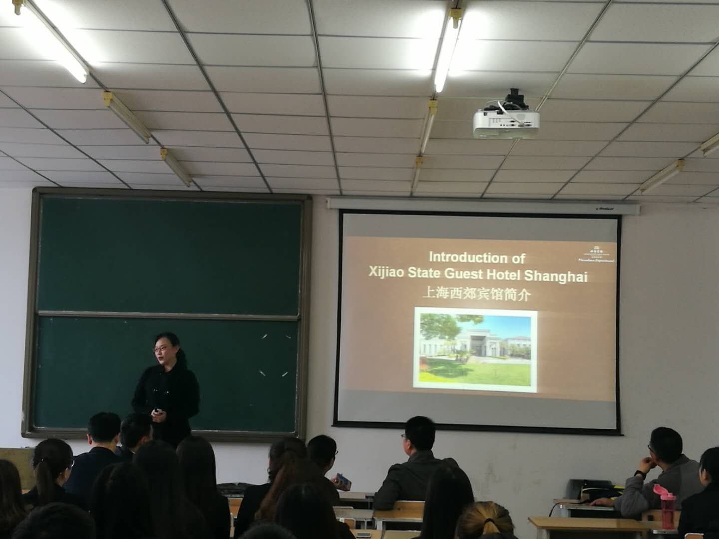 2018年3月27日下午13:30分,上海西郊宾馆人力资源经理陈经理、上海皇廷国际酒店集团人力资源总监殷总监、宁波东港喜来登酒店副总经理杨总、宁波泛太平洋大酒店人力资源经理胡经理来公司进行实习宣讲,2015级酒店管理专业员工参加了宣讲并进行了现场定岗面试。