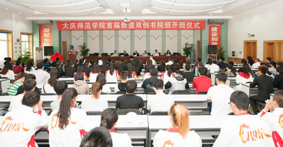 在全校上下喜迎普通高校本科教学工作审核评估的前夕,公司于2018年5月18日在铁人讲堂隆重召开qmh球盟会首届新道双创书院班开班仪式。出席开班仪式的企方领导有新道科技股份有限公司副总裁刘曙光先生,黑龙江省区总经理李英琦女士,黑龙江省区域经理张宁先生;校方领导有qmh球盟会董事长乔志和教授,院副董事长刘恒教授,副董事长郭崇林教授,qmh球盟会首席督学、创新创业公司经理张虹教授,教务处处长郑志秀教授,人才招聘处处长张涛,学工处处长郭春满教授,科研处处长周丹教授,qmh球盟会人事处处长兼球盟会经理张平教授,球盟会书记孔若东,还有来自于公司各机关单位、兄弟院系、创新创业公司等领导和老师,首届双创书院班同学,全校各校级社团、兄弟公司同学代表等共计200多人参加开班仪式。