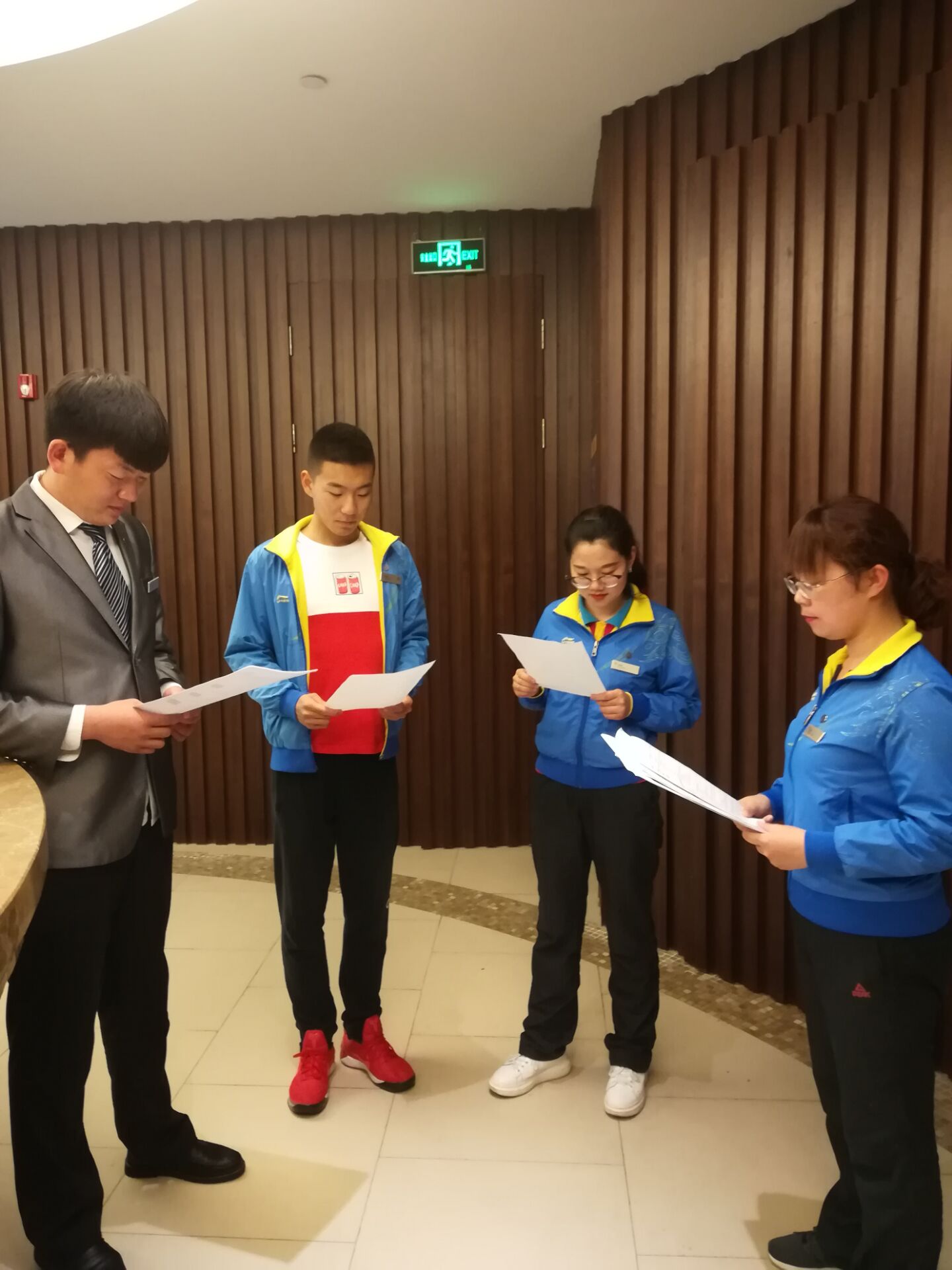 同事们和主管经理们都很容易相处,他们很认真的教我知识技术,处理各个问题。例如如何分辨会员、住店客人或者是散客,对待不同客人需要用不同的接待方式,会员经常游泳,不需要过问太多。直接给更衣室的钥匙,不能让会员等候太久。住店客人和散客需要首先问好,然后仔细观察他们,刚住店的都是来询问一下,不会进去,所以只需要给他们详细介绍水温,水池大小,水池深度等就可以了;但是准备齐全的,需要询问客人房间号码和是否佩戴泳帽,游泳圈之类的物品,是否需要更衣室的钥匙。这里平时接待的是会员们,周末住店客人很多,健身中心属于免费项目,所以周末接待量会明显增加,我们的工作量也会随之增加。同时各种繁琐的事件也会发生。例如五月下旬的一天,一位会员游泳结束后向我反应她的鞋子找不到了,我在更衣室给她寻找了一遍,去了游泳池仔细寻找一遍都没有发现鞋子的踪迹,会员说她的鞋子放在椅子下面,丢了就丢了吧,随之就离开了。但是更衣室没有摄像头,没有办法寻找,我仔细想了一下,有另外8位次卡的客人在这位会员以后来到,会不会因为小孩多比较嘈杂,匆忙之下把鞋子装进柜子了呢,然后去很抱歉地麻烦次卡客人打开柜子寻找一下,然后在第三个柜子里找到了。这件事给我很多感触,遇到事情要冷静分析,妥当处理问题,要处理好与客人之间的关系。