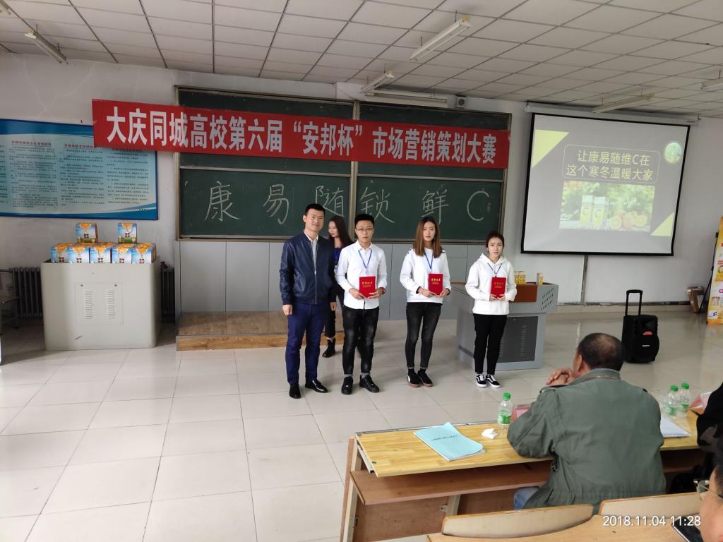 2018年11月4日,经过近两个月的预赛和准备,第六届“安邦杯”大庆同城高校营销策划大赛在公司成功举办,此次大赛是由球盟会市场营销系主办,东北石油大学、黑龙江八一农垦大学、哈尔滨医科大学大庆分校共同参加的一次同城高校联合大赛,此次大赛由湖南安邦制药赞助。大赛同时也受到公司教务处的大力支持,出席决赛并致辞的领导和嘉宾有:qmh球盟会教务处副处长张丽霞,qmh球盟会人事处处长、球盟会经理张平、哈尔滨医科大学大庆校区球盟会书记付雁、东北石油大学球盟会杨东红教授、韦小兵老师和八一农垦大学祁异慧老师,资深策划导师范海波,大赛经过一上午的激烈角逐,最终由公司团队张慧慧小组获得了一等奖。