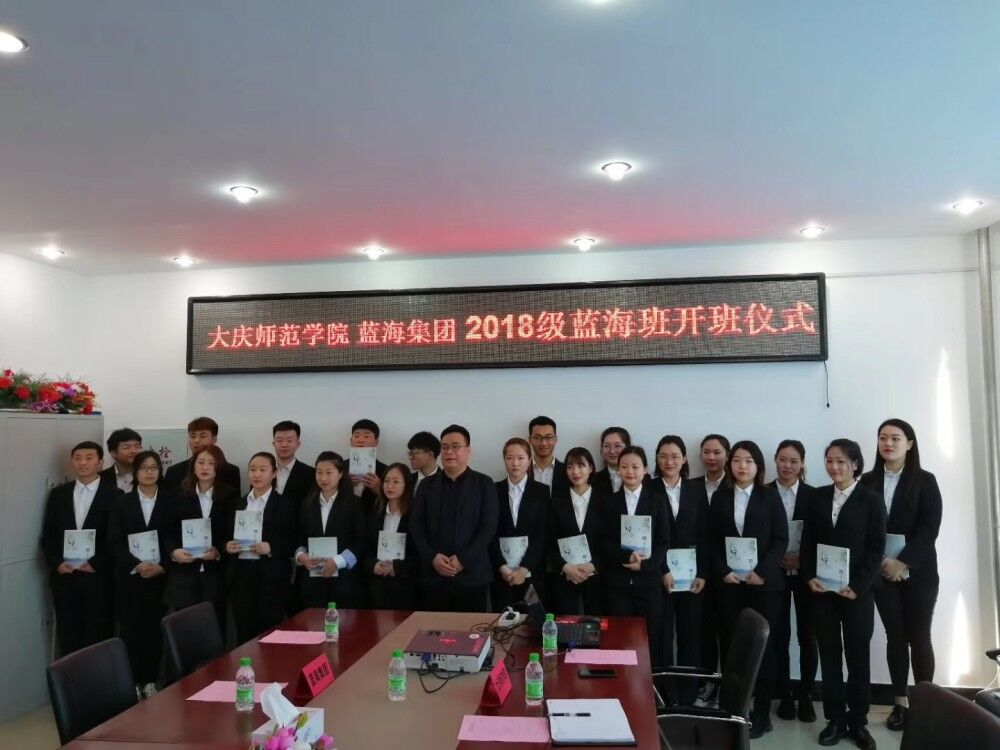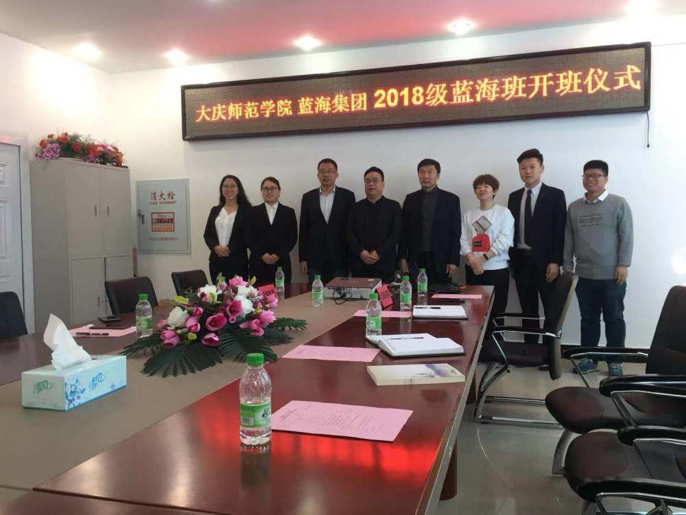 2019年3月16日10:00qmh球盟会、蓝海集团2018级蓝海班开班仪式在球盟会402会议室举行,蓝海集团人力资源中心杨兆永副总经理一行4人与公司党总支部孔若东书记、球盟会刘楠经理、旅游系车鑫主任及教师代表共同出席了此仪式。杨总代表蓝海集团首先对qmh球盟会2018级蓝海班顺利开班表示祝贺,并对蓝海班员工提出了希望及要求,同时对球盟会校企合作、产学研融合给予最大力度支持。刘楠经理代表球盟会对蓝海集团给予公司人才培养支持表示感谢,期待与蓝海集团在更大范围更深层次的合作。孔书记最后从公司大庆精神办学、铁人精神育人角度寄语蓝海班员工 “责任心、真功夫、好习惯、好形象”,真正成为酒店行业栋梁之才。