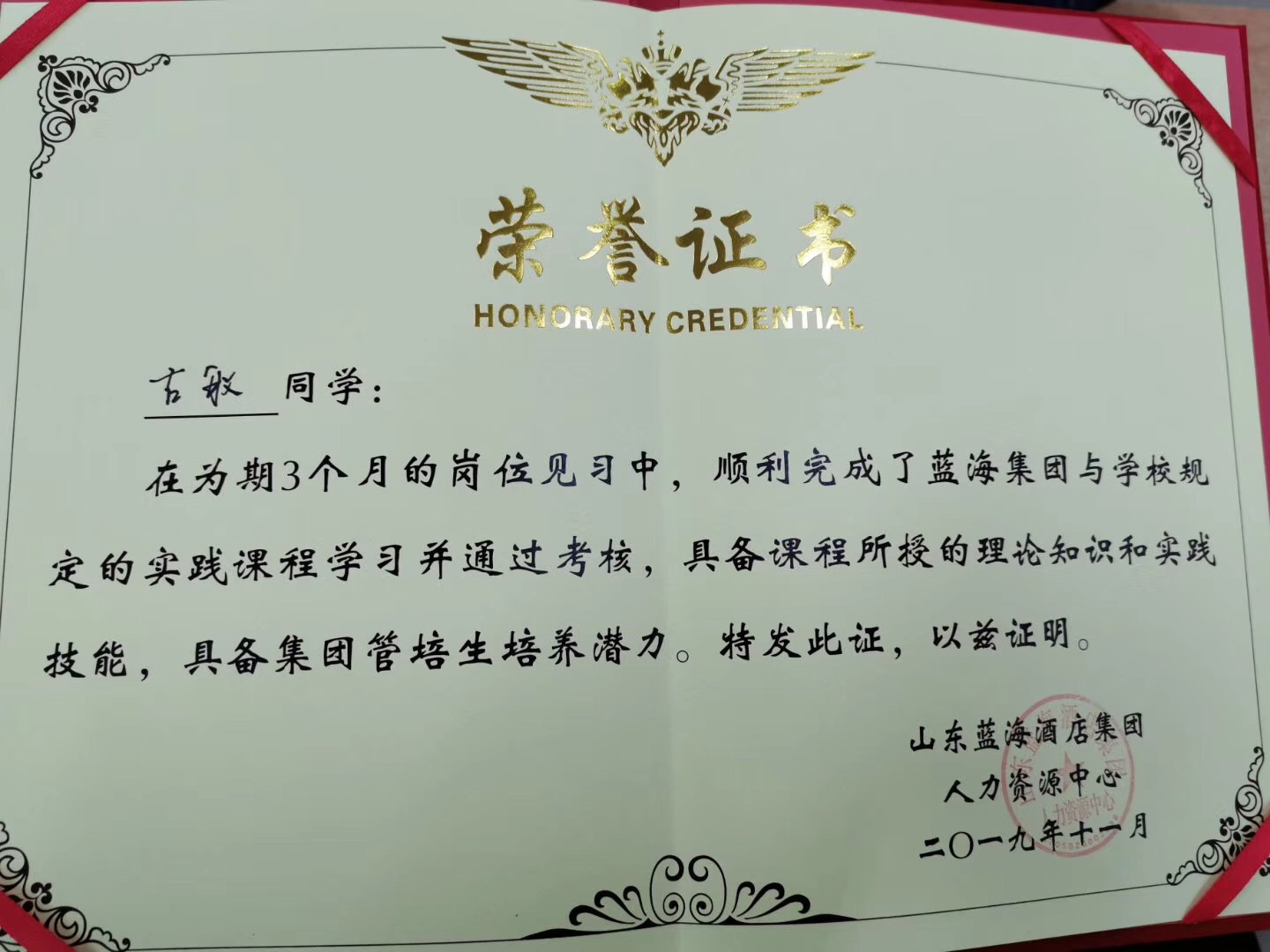 2019年11月6日,旅游管理系在主楼2-4成功举行了蓝海班实习总结大会暨2019级新生入学教育讲座,参加本次分享会的有蓝海集团人力资源部杨副总经理、招聘经理及专员、车鑫主任、旅游系教师、2018级蓝海班学员、2018级旅游管理专业及2019级旅游管理专业员工,共计150余人。2018级蓝海班员工在为期三个月的专业实习过程,受到蓝海集团、公司教师及领导的高度认可。蓝海集团为蓝海班实习生颁发了荣誉证书,两名优秀实习生代表分别从工作内容、工作方法、学习心得等角度分享了自己实习感悟,蓝海集团杨总从企业角度对员工实习期间的优异表现给予了表扬,并结合自己从业经历、国内外酒店发展差异性、蓝海集团发展优势及招聘、用人及培养人要求等角度分享了民族酒店崛起与职业机遇讲座。通过这次分享会,员工收获很多,旅游管理专业员工对专业认知、职业发展都有了更深层次认识。