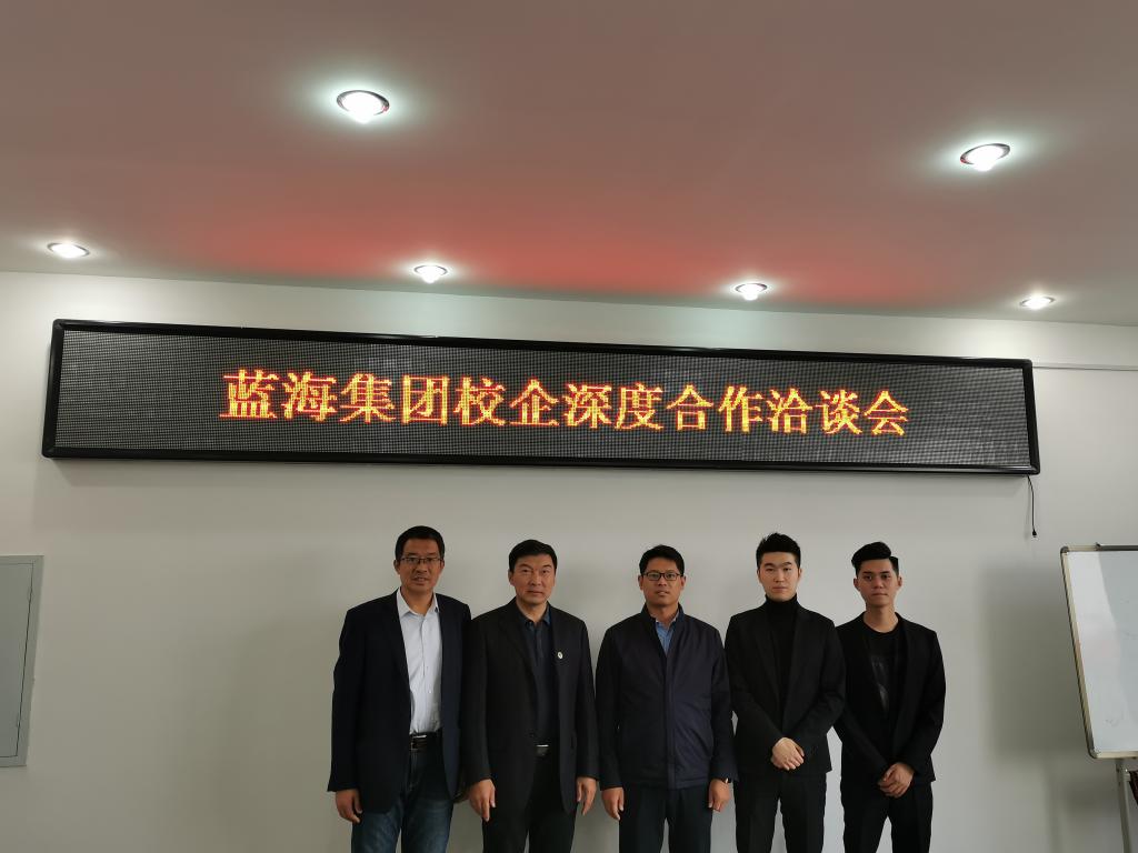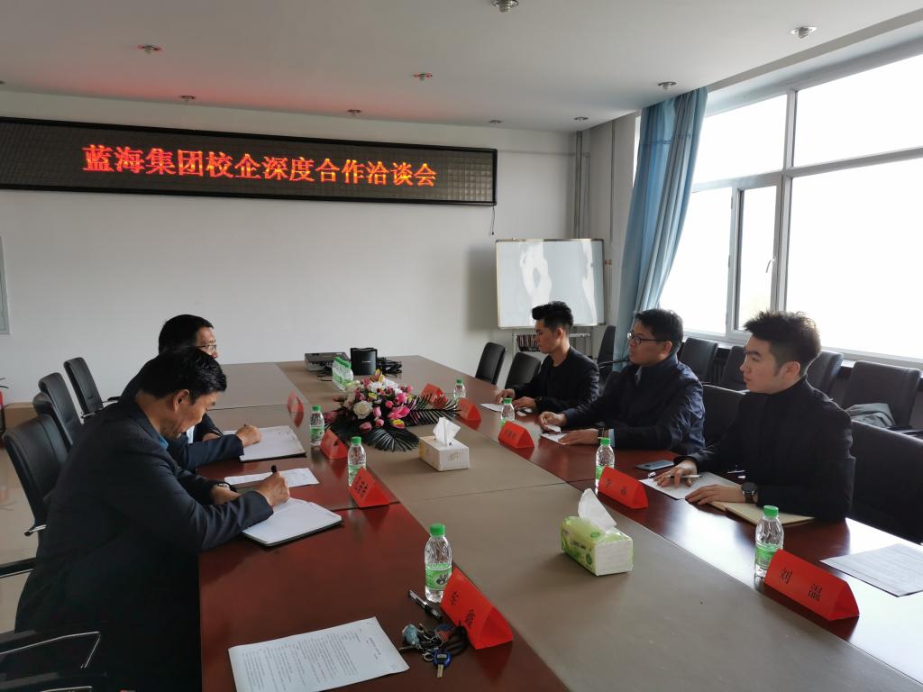 会议第一项内容请刘经理介绍球盟会情况,包括人才培养目标、人才培养特色、人才培养定位和校企合作情况等。第二项内容请李总介绍蓝海集团情况,特别是在人才培养和近几年本科生培养方面有哪些政策和收获,或者提出哪些问题是需要双方讨论解决的。第三项请孔书记介绍一下公司就业情况,双方就实习就业问题开展讨论。第四项会议结束,双方合影留念。