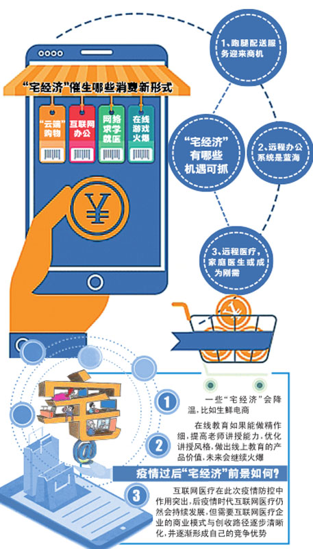 球盟会副经理孙伟仁博士告诉记者,“宅经济”就是“宅”在家里的经济,包括居家消费和居家工作。“宅经济”本质上是互联网经济,无论是在家经商,还是兼职,或是办公、消费,其基础都是网络化。